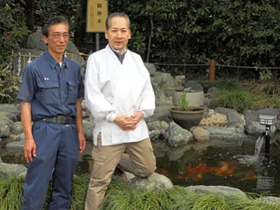 久伊豆神社の方に錦鯉の注意事項などをお伝えしておきます -